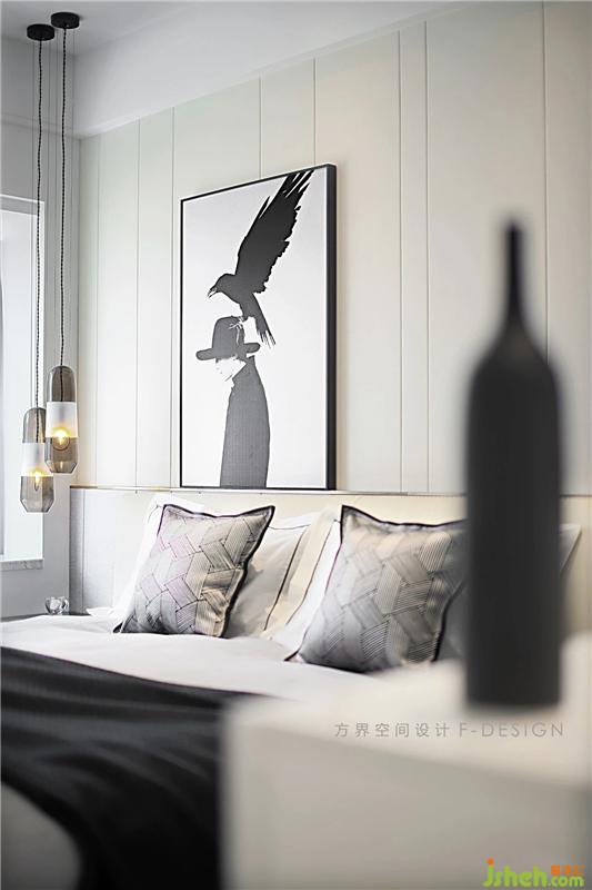 主臥整體偏向黑白相間的簡潔色彩運用,突出舒適的氛圍,整體簡潔干凈,吊燈文藝感十足,沒有過多色彩的混合,也沒有累贅細碎的裝飾,隱形線條衣柜把手,和空間很協(xié)調(diào),以得體大氣之態(tài),打造休憩之地。室內(nèi)設計師