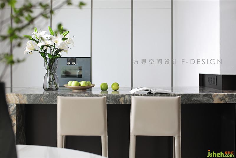 餐桌旁的一側(cè)是一個小吧臺,不僅可以用來閱讀和辦公,翻閱書籍或閑余之時,斟酌一杯,在快節(jié)奏的都市生活中找到片刻寧靜。