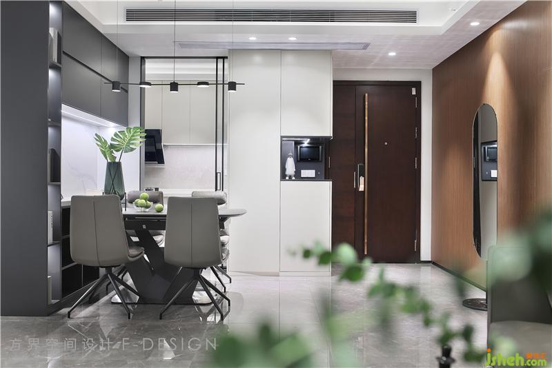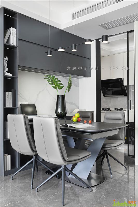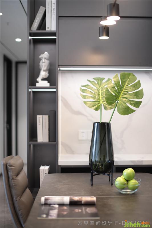 餐廳上方的簡約直線吊燈,讓空間顯得高級感。淡雅溫潤的燈光在不打破現(xiàn)代感的基礎(chǔ)上,深圳室內(nèi)設(shè)計(jì)師為空間賦予了柔和色彩。靠墻的餐邊柜,收納井然;不僅提升了美觀性,還增加了一定的收納功能。