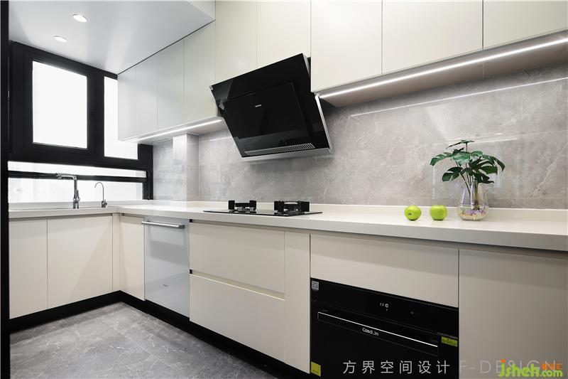 廚房的邊柜設(shè)計(jì),增加了儲(chǔ)物空間,結(jié)構(gòu)精簡沒有過多的修飾,純凈的空間,勾勒出一個(gè)精致時(shí)尚的烹飪空間。