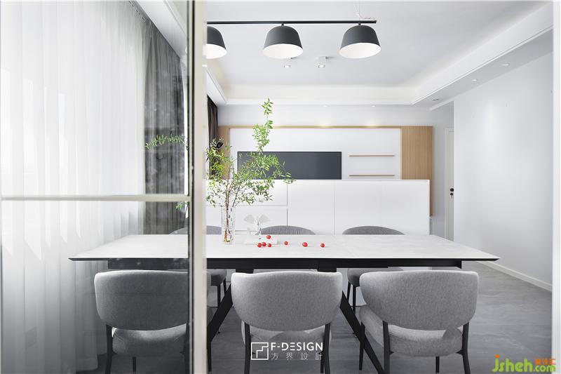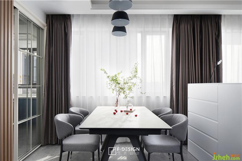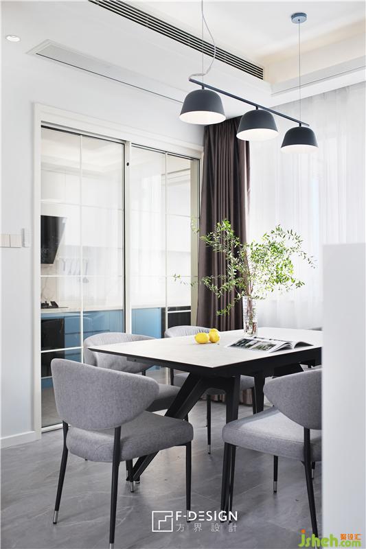 餐廳巖板餐桌線條利落,搭配灰色餐椅,舒適大氣;餐桌也選用了可以伸縮的桌面長(zhǎng)度的功能,多人聚餐的時(shí)候也能坐得下。