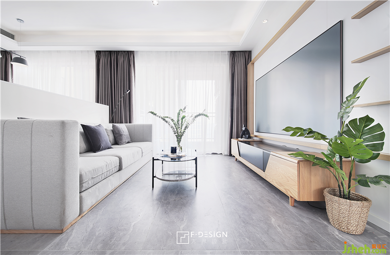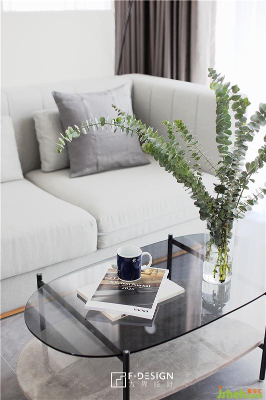 客廳延續(xù)了整體的簡約優(yōu)雅,光線透過紗簾,自然光通透整個客廳的空間;清風(fēng)徐來,安適自在。