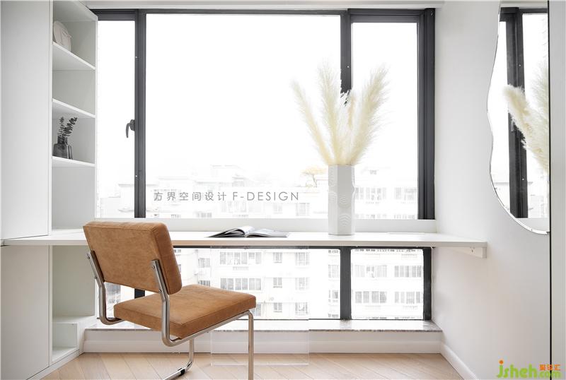 衣帽間兼書房,通透的一大扇落地窗投來自然的光線,讓整個空間顯得更加明亮,一個可以獨處不被打擾的空間。