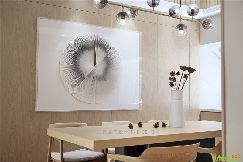 簡約大氣的立體裝飾掛畫,就像一道婉轉(zhuǎn)而優(yōu)美的詩篇,歌頌著團圓和幸福。而為了不破壞空間整體性與美觀性,我們在掛畫旁設(shè)計了一道隱形暗門,是不是不說還看不出來?我們選擇將廚房門體做隱形門處理,使整體空間融為一體。