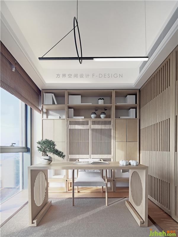 靜坐書房,翻閱書籍。書房采用大量做工精細(xì)的實(shí)木家具,茶臺背后的木柜精美的分為多格,既滿足了藏書要求,又營造出古樸的氛圍。
