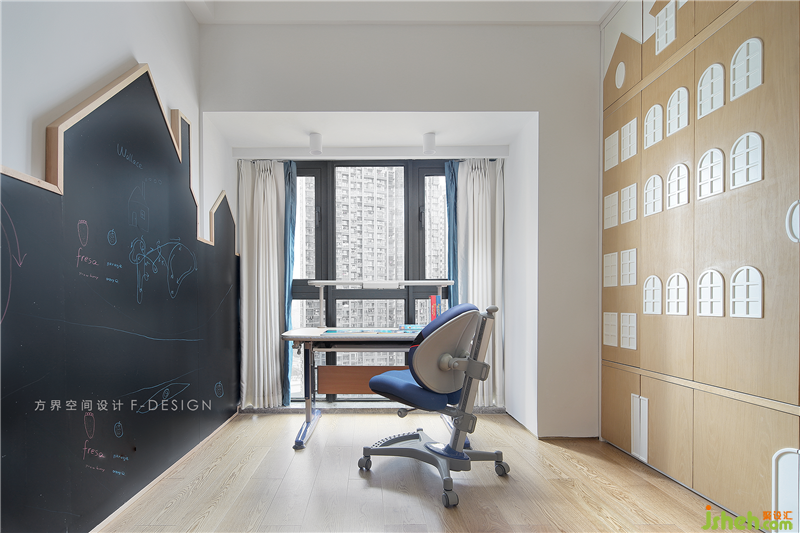 兒童書桌臺滿足孩子日常的學(xué)習(xí)生活。進(jìn)門右側(cè)極具裝飾性和趣味性的裝飾柜,滿足了物品的收納功能。