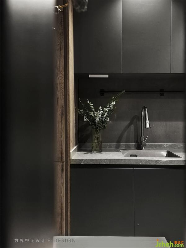 1、封閉式的廚房拆除了墻面,做成了開放式的廚房;