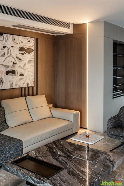 客廳汲取意式精髓,華潤幸福里公寓設(shè)計將經(jīng)典的現(xiàn)代室內(nèi)設(shè)計風(fēng)格發(fā)揮到極致,不著痕跡鑲嵌在家具細(xì)節(jié),將舒適、美好和品質(zhì)帶入人們生活