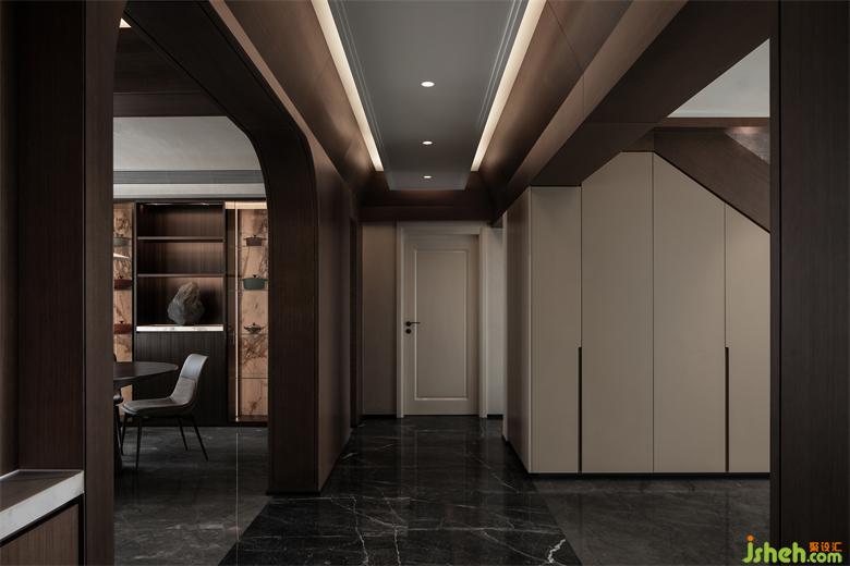 TRID添睿室內(nèi)設(shè)計(jì)此次的私人復(fù)式住宅總面積為242.9㎡,現(xiàn)場(chǎng)的梁位結(jié)構(gòu)交疊復(fù)雜,給空間造成高度不一的現(xiàn)狀,TRID添睿室內(nèi)設(shè)計(jì)中使用了圓弧和斜面的元素,簡(jiǎn)約的線條在規(guī)矩的空間中,弱化梁柱墻體之間的狹小方正感,通過(guò)這些元素,給空間產(chǎn)生延伸感,進(jìn)而在視覺(jué)上擴(kuò)大空間的邊際。