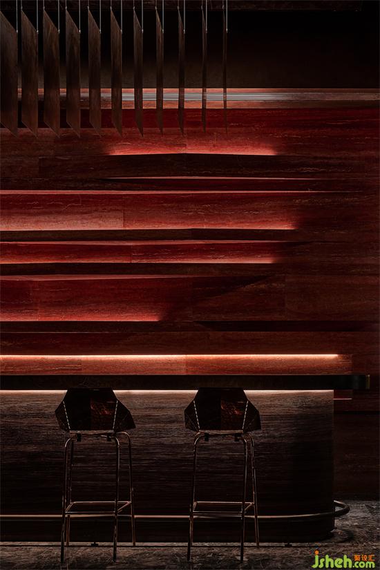 巖面自身的色彩優(yōu)勢,足以讓空間的色彩自然融合會所設計,深圳會所設計通過不同的材料的顏色在不同空間裏分別發(fā)揮著各自的作用,斑駁的金屬肌理漆、質感分明的木飾面、粗礦自然的石材,整體交互融合。