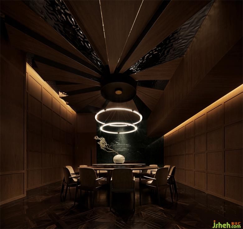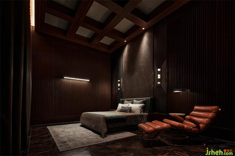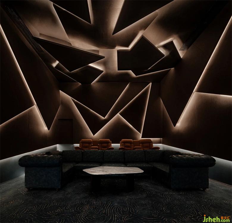會客區(qū)天花用直線光強調(diào)頂棚,深圳會所設計包房的線條燈,整體空間點狀光源強調(diào)細節(jié),讓空間層次具有變化,燈光與材料的糅合交織,都渲染出靜謐悠然的氛圍,光影的韻律,置身其中,怡然自得。