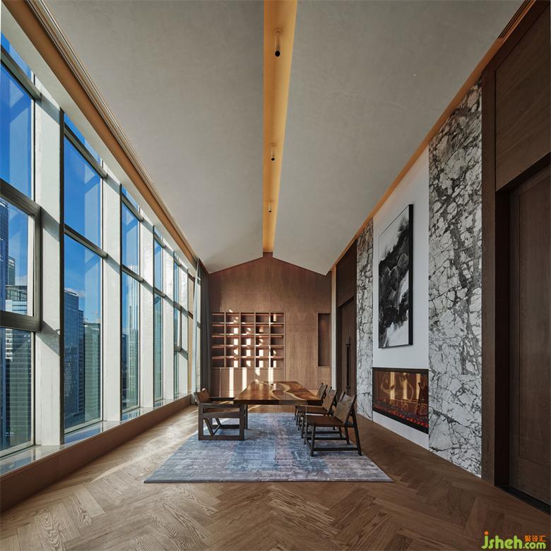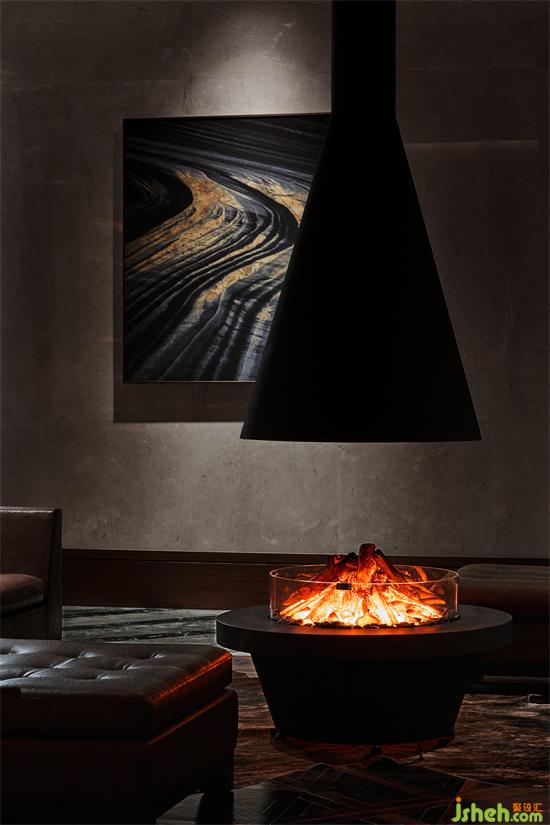 挑高的木質坡屋頂,深圳會所設計肌理豐富的墻面,精致溫暖的壁爐,棕色皮質沙發(fā)以及絨毛地毯,與周圍山、水、林和諧共生;我們希望給空間帶來一份溫暖,營造自然的美好,三兩好友,交談甚歡,這份溫暖可以在彼此之間,永遠留存。
