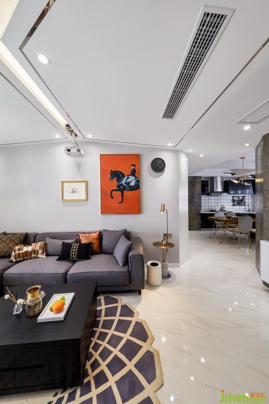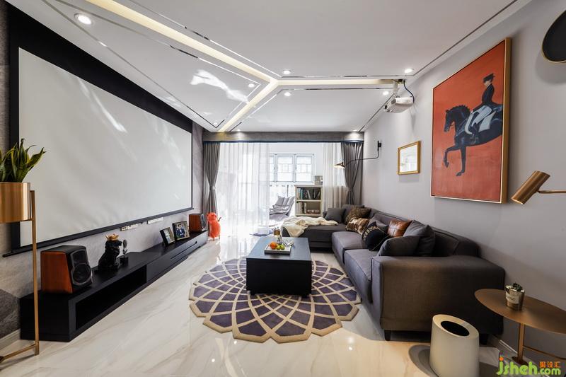客廳是家里的中心地帶,用100寸的投影幕布代替電視機(jī),考慮到看電影會比較舒服,以后有小孩了看幕布也不會傷害眼睛。