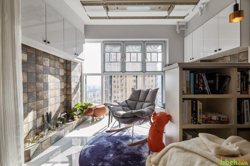 打通的陽臺區(qū)域放置了一個(gè)吧臺,平日里有看書的習(xí)慣。周末在家,坐在沙發(fā)上隨手拿起一本書閱讀,看完后直接放置原位,減少了清理的時(shí)間。