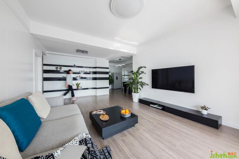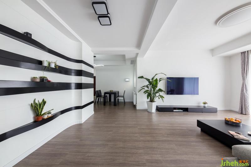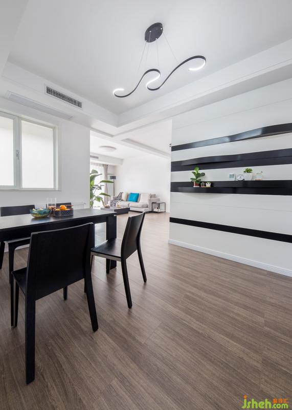 進(jìn)門(mén)正對(duì)著的是餐廳背景,整個(gè)餐廳背景的設(shè)計(jì)靈感來(lái)自于金都漢宮原有建筑外立面,黑與白的線條交錯(cuò)延續(xù)到客廳,讓原本分開(kāi)的客餐廳的結(jié)合成一個(gè)整體,流線型的造型簡(jiǎn)單明了,干凈利落,猶如長(zhǎng)江滾滾流水氣勢(shì)磅礴,采用黑色的家具與背景做搭配,讓整個(gè)空間形成經(jīng)典的黑白配色百看不厭。