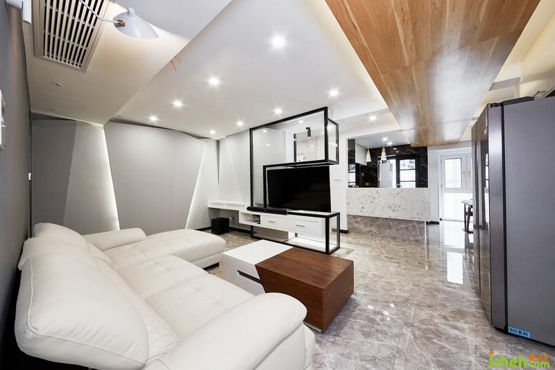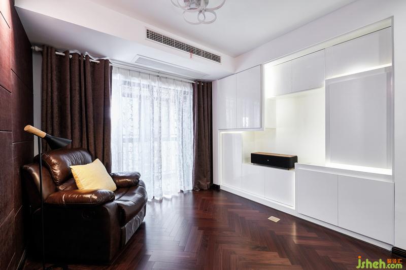 室內(nèi)設(shè)計(jì)師在休閑區(qū)域的造型儲(chǔ)物柜不僅滿足了視覺上的要求,更加將功能性展現(xiàn)到極致,燈帶的造型也呼應(yīng)了客廳的墻面。