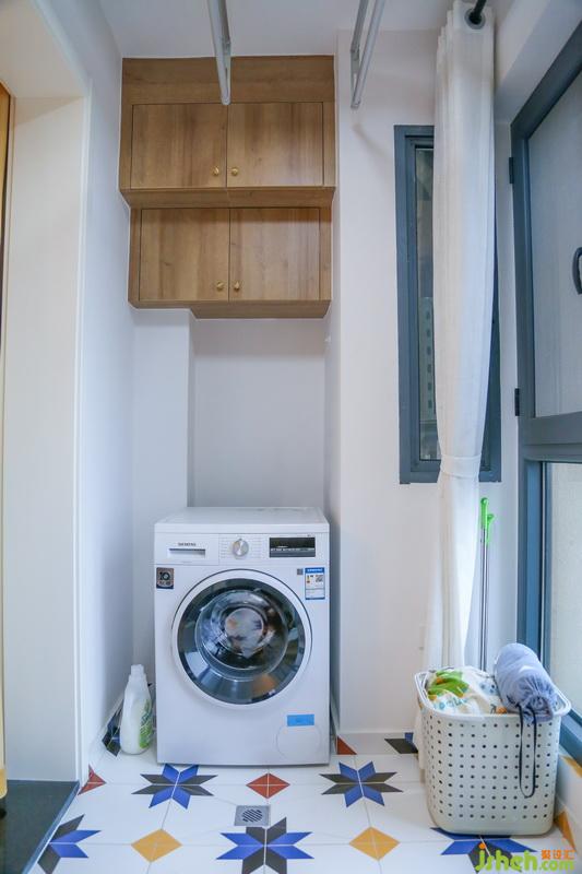 室內(nèi)設(shè)計(jì)師在陽(yáng)臺(tái)上更注重功能性,左側(cè)是專(zhuān)門(mén)的洗衣區(qū),洗衣晾衣一步到位。頂部的雙層吊柜擁有雙倍的儲(chǔ)物空間,可以容納更多的囤貨。右側(cè)的儲(chǔ)物柜則是留給行李箱、吸塵器等大件物品。