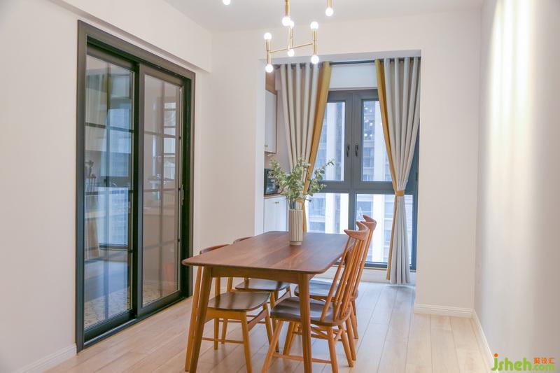 我們將北陽(yáng)臺(tái)融入餐廳區(qū)域,利用陽(yáng)臺(tái)打造了兩個(gè)多功能儲(chǔ)物柜。它不僅僅是對(duì)儲(chǔ)物空間的補(bǔ)充,還留有可供操作的臺(tái)面,容納了烤箱、燒水壺,分擔(dān)了一部分廚房收納。