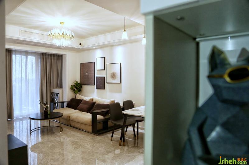 整體色彩低調(diào)淡雅,銀灰色窗簾勾勒出自然氣質(zhì),簡(jiǎn)單的造型搭配流暢的線條,彰顯優(yōu)雅氣質(zhì),米色+黑色+褐色組成客廳主調(diào),恰到好處地加入金色,讓整個(gè)空間更顯精致