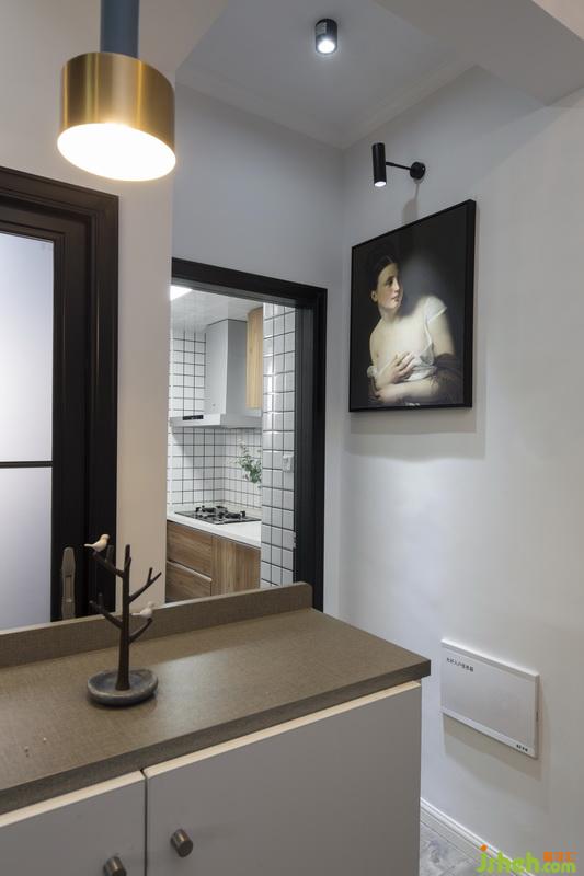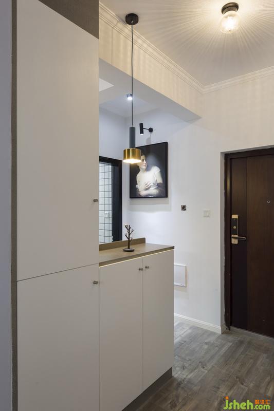 對(duì)于小戶型來說,難點(diǎn)就在于:如何既能滿足儲(chǔ)物功能,還能把空間感表現(xiàn)出來。所以在入戶區(qū)這里,避免原始戶型的“過道感”,是設(shè)計(jì)師首先要解決的問題。