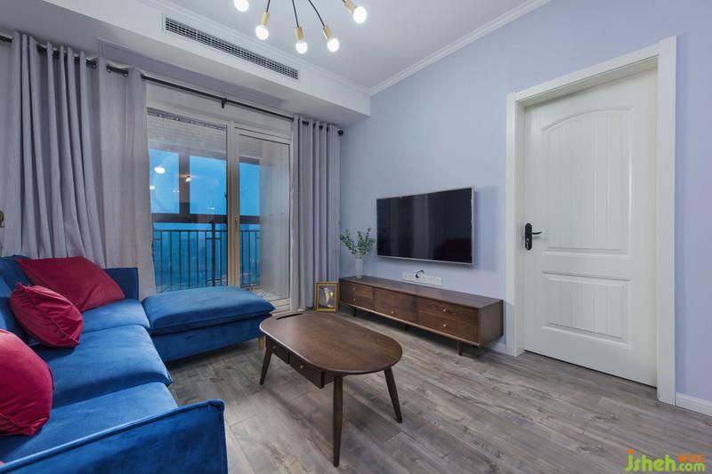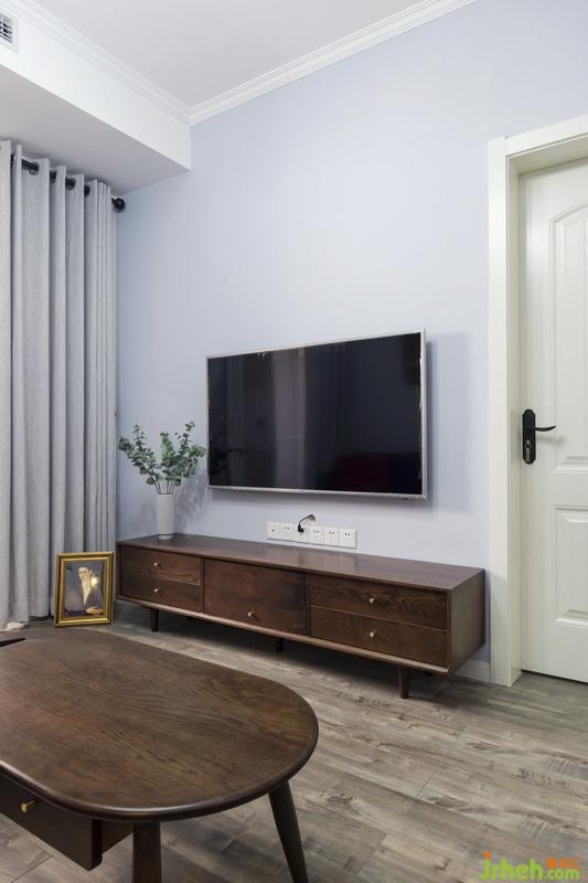墻上的掛畫,有著中式動(dòng)畫《大魚海棠》般的古典與浪漫,極具巧思。亞麻材質(zhì)的灰色窗簾和整體色彩極搭。每當(dāng)夜幕掛在天邊,燈光輕柔,坐在沙發(fā)前看電視,是小夫妻一天之中最享受的時(shí)光。