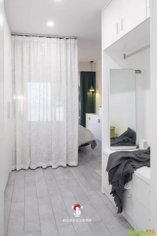 臥室、衣帽間和衛(wèi)生間的極致空間組合,簡約的黑色邊框玻璃隔斷分隔主臥與衣帽間,米白色的紗簾若隱若現(xiàn)的遮擋,分隔與互動(dòng)的交織,現(xiàn)實(shí)與藝術(shù)的結(jié)合。