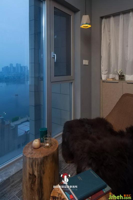 7米長(zhǎng)的陽(yáng)臺(tái)連通客廳和主臥,延續(xù)室內(nèi)空間的視覺(jué)風(fēng)格,白框的線條讓整個(gè)空間都得到了統(tǒng)一。往窗外看去一眼就能看到整個(gè)南湖的風(fēng)景,自然景致因此探進(jìn)溫暖的屋子?!霸改闳?,愿你春不寒,繁華落幕,我伴你落日流年”景觀陽(yáng)臺(tái)變成像沙灘般輕松愜意的度假地。
