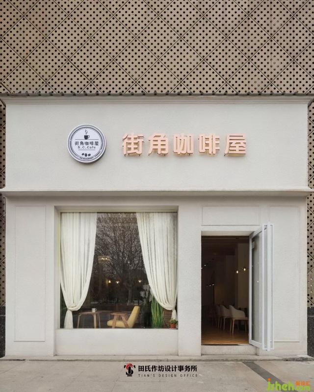 從門店外觀來看,室內(nèi)設(shè)計師以最簡單的暖白色作為底色,棕金色的亮面圓體的大字作為門店的招牌,黑白簡約的圓形咖啡屋LOGO彰顯著本店的風(fēng)格和店主的品味。半落地的巨型飄窗可以讓路過的人們清晰明了地看見店內(nèi)的裝飾,與此同時,坐在窗邊的客人們也能在享受咖啡的時候看看窗外街邊的人來車往,在能忙碌的鬧市之中有片刻休憩之地,而自然,清透明亮的窗戶也將室外的光線帶進室內(nèi),使咖啡屋內(nèi)部更加通透敞亮。