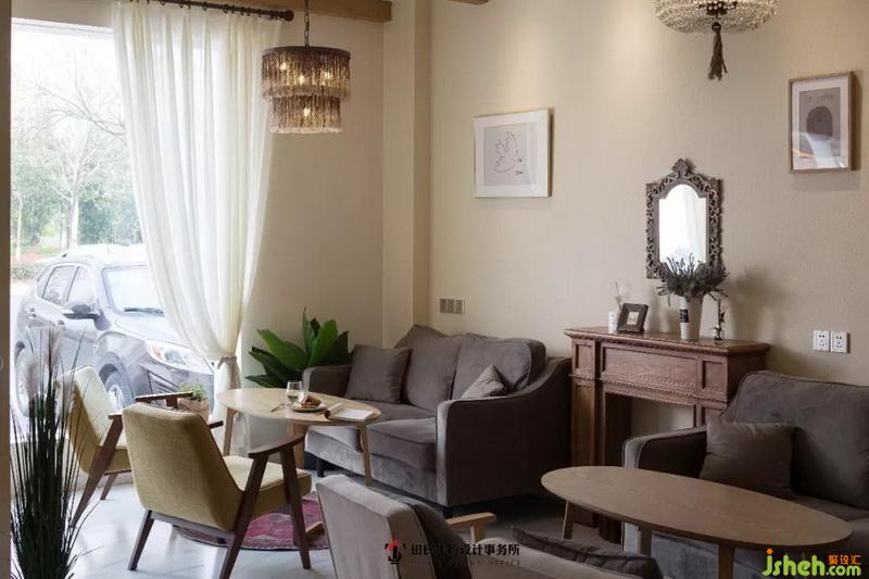 休息區(qū)的吊燈則各不相同,但都是以麻繩為主體,棕、黃、白三色交織,與咖啡屋主體呼應(yīng),展現(xiàn)出濃濃的歐式風(fēng)情。