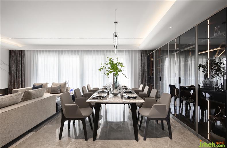 方正的客餐廳,大落地窗樣板房設(shè)計(jì)