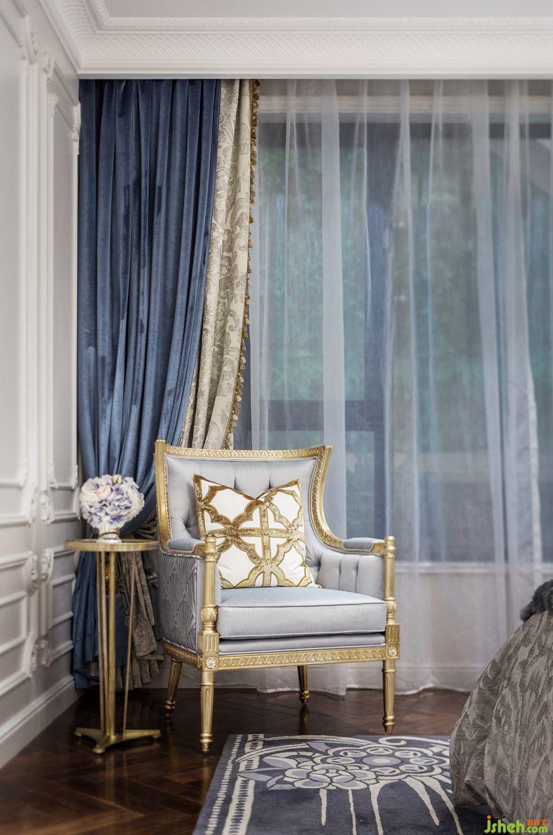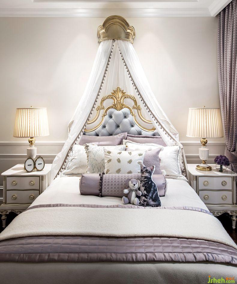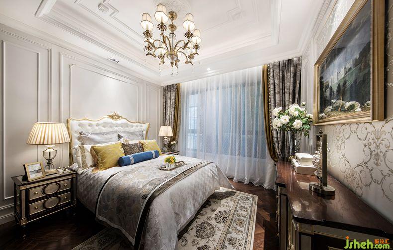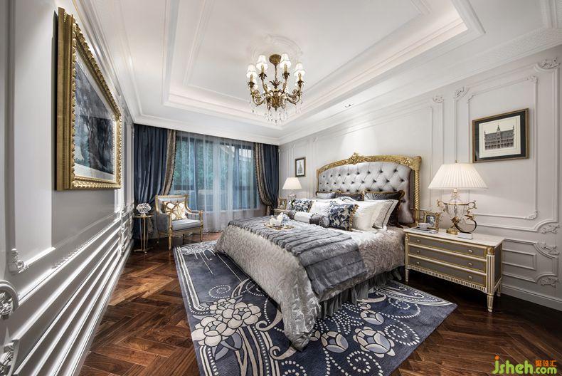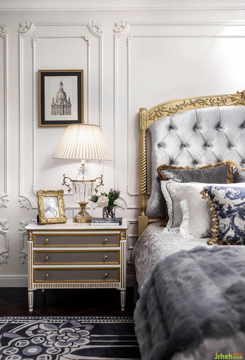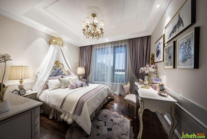 臥室延續(xù)了法式巴洛克的古典與對稱。主臥色調(diào)為淡淡的葡萄紫,高檔法蘭絨面料讓睡眠空間更加柔軟性感而不失浪漫優(yōu)雅。