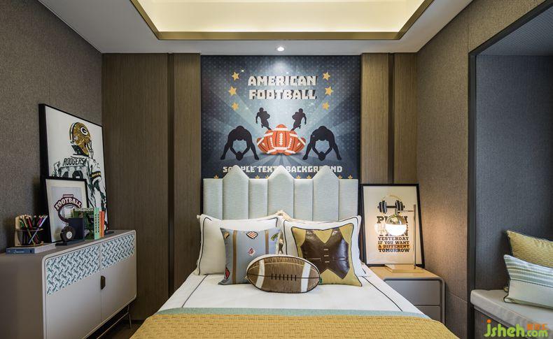 室內(nèi)設(shè)計(jì)師以盛行的美式足球作為兒童房的主題,通過充滿活力的運(yùn)動(dòng)元素,讓整體空間更加生動(dòng)有趣。