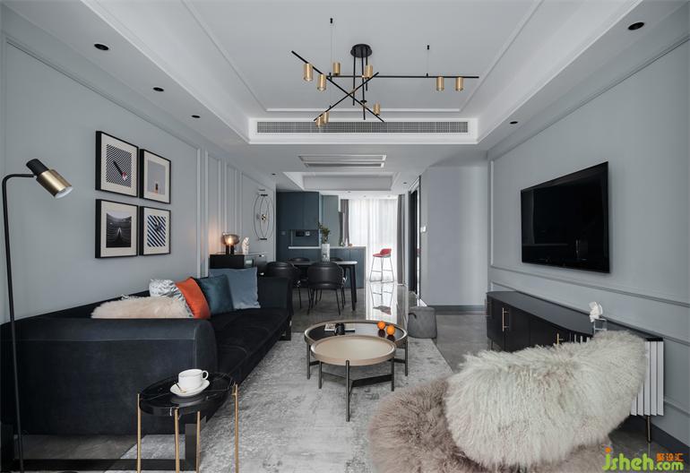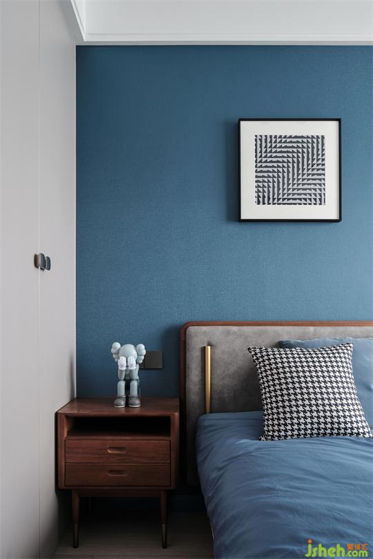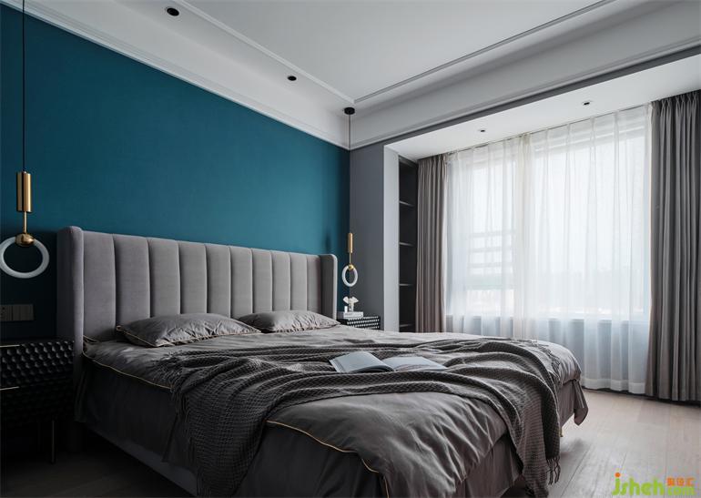 為滿足日常生活,北陽臺被設(shè)計(jì)成西廚,島臺搭配精致的高腳凳與充足的收納空間,從功能和生活情調(diào)上,都得到了提升。主臥室去繁就簡,揚(yáng)州家居設(shè)計(jì)僅用邊幾的吊燈就提高了整體調(diào)性,大面積的藍(lán)灰調(diào)擴(kuò)大了空間的可視感,打造安逸靜謐的入睡氛圍。