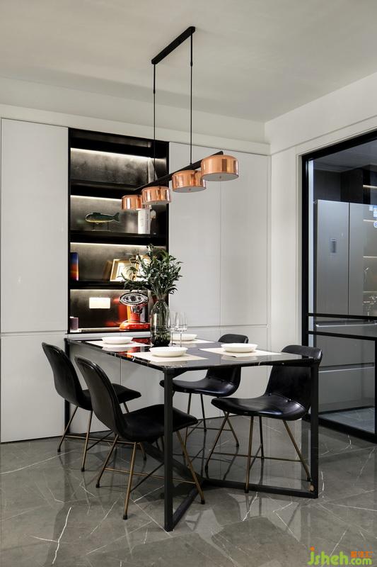 ▲室內(nèi)空間被室內(nèi)設(shè)計(jì)師巧妙劃分利用,公共區(qū)域以開放式的布局進(jìn)行呈現(xiàn),保證了光線自由穿梭,黑白灰的色彩搭配,也是充滿經(jīng)典與時(shí)髦感的。