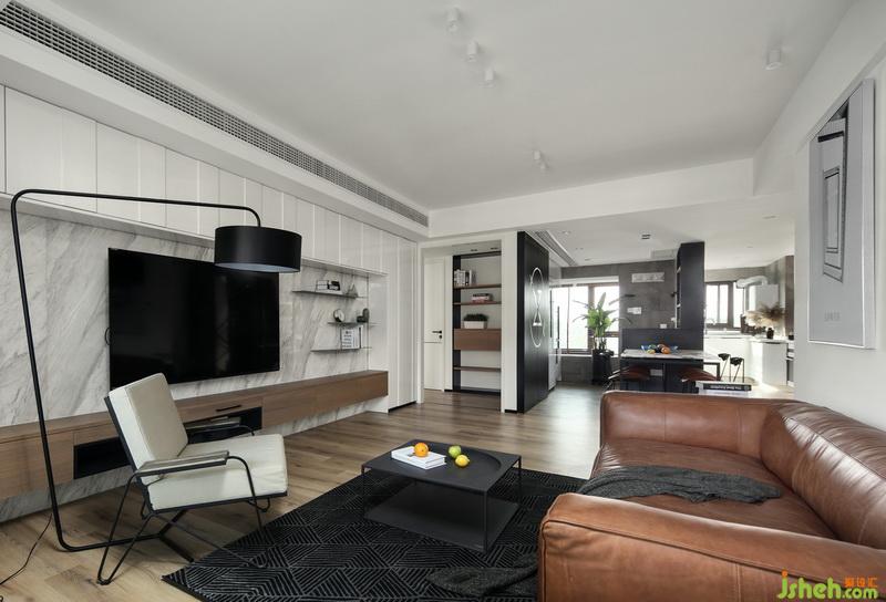 ▲黑色的入戶門(mén)門(mén)復(fù)古而典雅,玄關(guān)背景采用超大面鋼板雕刻屋主姓名組成的logo,加上透光板和燈光,成品非常有質(zhì)感與腔調(diào)。
