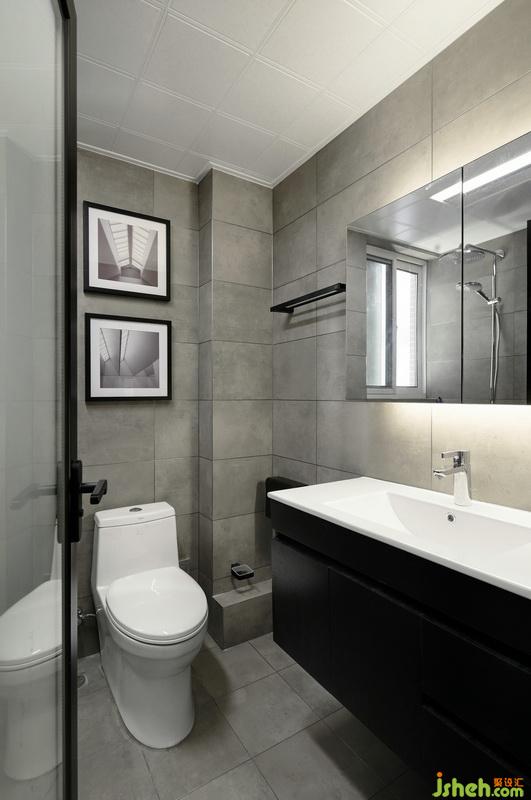 ▲洗浴室的墻地滿貼米灰色砂巖磚,而鏡柜和浴室柜也具有豐富的儲物功能,室內(nèi)設(shè)計(jì)師使用黑白灰經(jīng)典色系的穿插,依舊可以營造出空間的利落清爽。