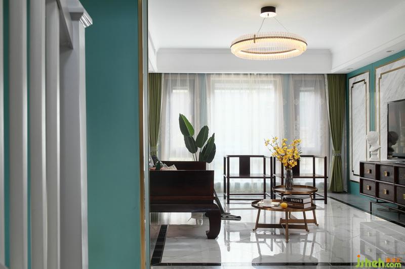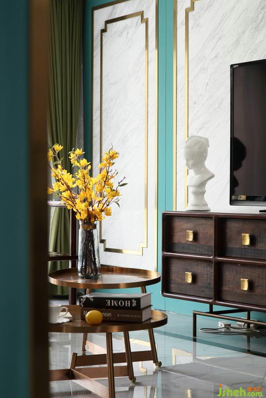 ▲新中式風(fēng)格的簡(jiǎn)約線條型電視柜及座椅,與空間中許多的線條裝飾也達(dá)到了一種奇妙的搭配。客廳的大面積的玻璃窗,隔著紗簾透進(jìn)來(lái)的陽(yáng)光,朦朧而唯美,不論是裝飾品還是鮮花的點(diǎn)綴,都讓這里增添了生動(dòng)的藝術(shù)氣息。