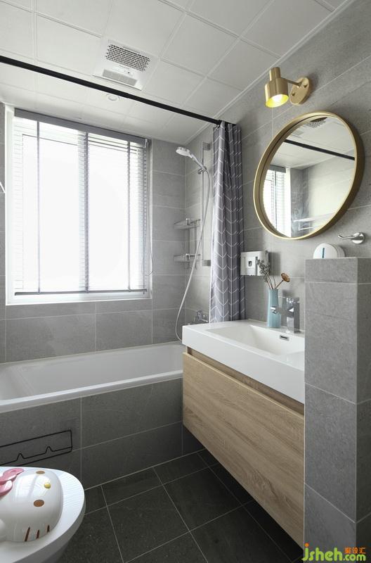 ▲洗浴室的墻地滿貼灰磚,浴室柜與全屋色調(diào)統(tǒng)一,而壁燈與鏡子黃銅元素的加入更是為這個區(qū)域帶來層次感。而現(xiàn)砌的半高隔斷墻不僅可以放置洗漱用品,也可起著一些遮蔽作用。設計與生活往往是相輔相成的。