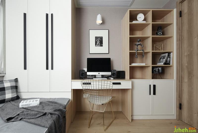 ▲書房區(qū)域,在并不寬敞的空間內(nèi),室內(nèi)設計師通過定制的家具滿足功能及儲物需求,將榻榻米、衣柜和書桌及書柜做了一體化結(jié)合設計,即便是素色空間,卻能讓人感受到溫暖而舒適的愜意生活。