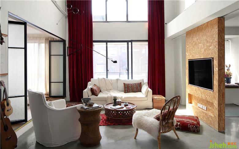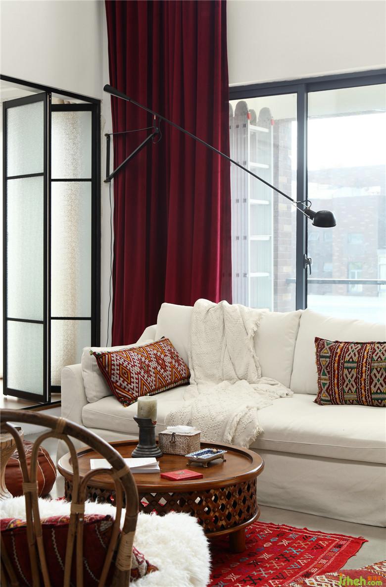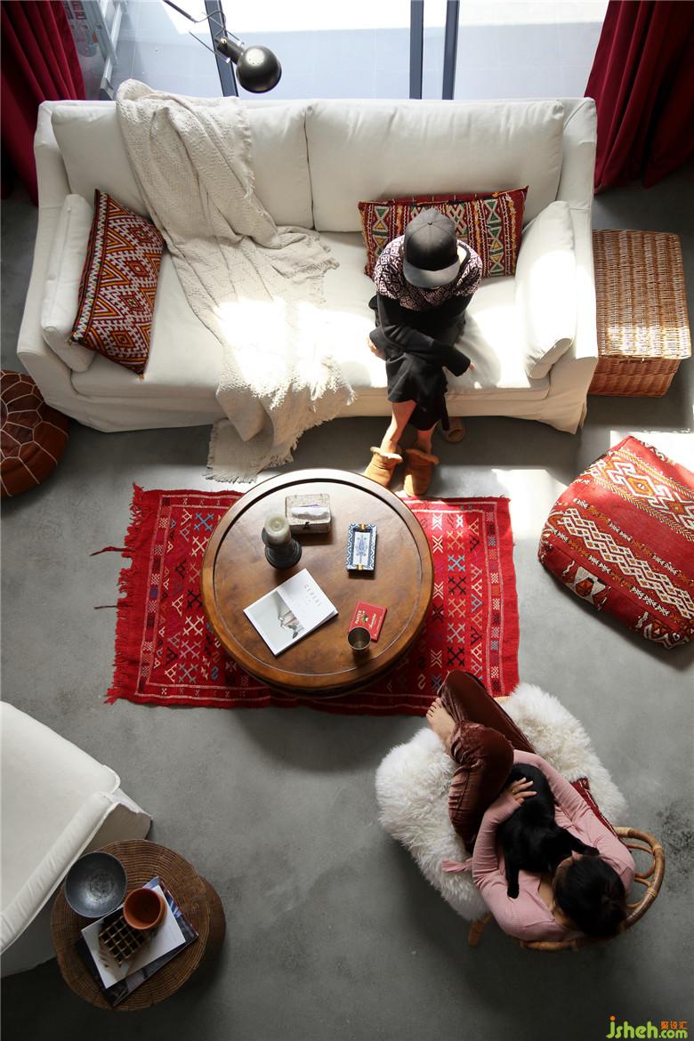 ▲挑高的客廳空間使這塊區(qū)域視野感極強,超級適合懶人趴的布藝沙發(fā)搭配復古且腔調(diào)感十足的藤制家具,繁簡結(jié)合,自成一派??梢苿拥碾娨暠尘皦葷M足了所需角度的調(diào)整,也可作為健身區(qū)與客廳之間的半隔斷處理。室內(nèi)設(shè)計師