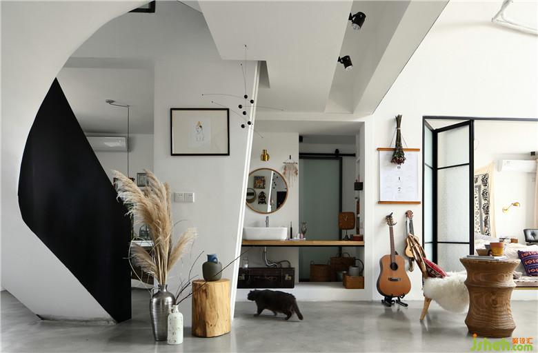 整個空間以白色為基調(diào),更多的是為了凸顯空間的不規(guī)則的創(chuàng)新改造設(shè)計。設(shè)計師在原始戶型上做了很多大膽的設(shè)計,同手將各個功能區(qū)連接到一起。伴隨灑落的充沛陽光,涌入室內(nèi),復古且腔調(diào)感十足的藤制家具,由業(yè)主自四海八荒淘來的精美裝飾物,別具匠心的旋轉(zhuǎn)樓梯,創(chuàng)新與復古的結(jié)合,色彩與材質(zhì)互相搭配,賦予生活以舒適感。室內(nèi)設(shè)計師