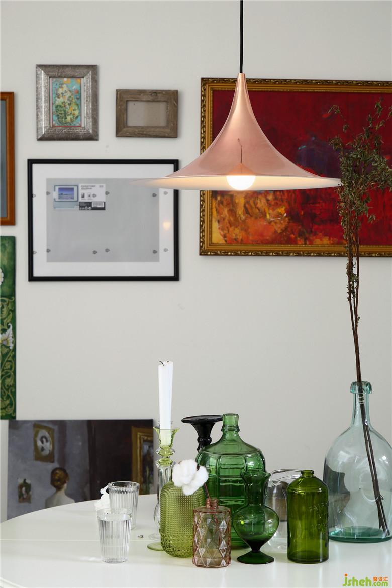 ▲屋主很喜歡收集這些玻璃罐兒,在餐廳這個(gè)簡(jiǎn)白空間中,精心布置的裝飾畫(huà)和玻璃罐——色彩與材質(zhì),創(chuàng)造空間的想象力。室內(nèi)設(shè)計(jì)師