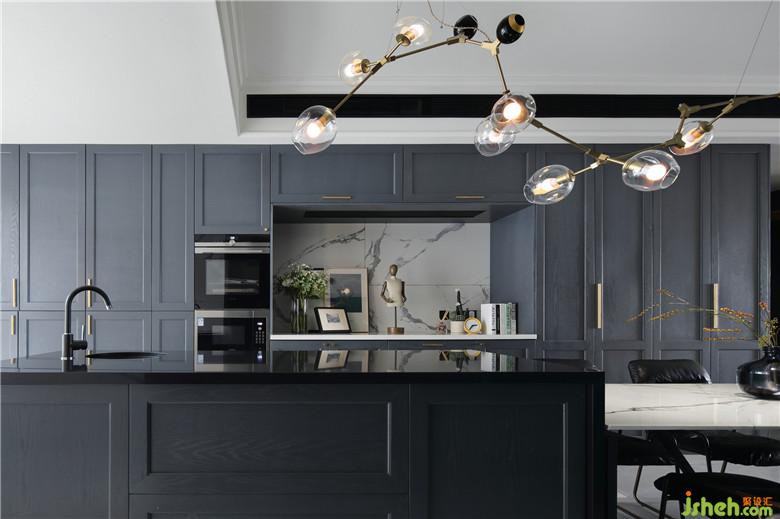 西廚的設(shè)計是本案比較重要的部分,邊側(cè)的操作臺面可以放置一些西廚電器,島臺利于操作,將原先次臥室的墻體往里推,從而讓柜體得到更加深的儲物空間。西廚的柜門涵蓋了原先的柱體結(jié)構(gòu)包括真實的儲物空間,讓柜門作為裝飾貫穿整個餐廳,并采用芬琳漆木器漆噴涂使其和乳膠漆同色具有更好地質(zhì)感和整體性