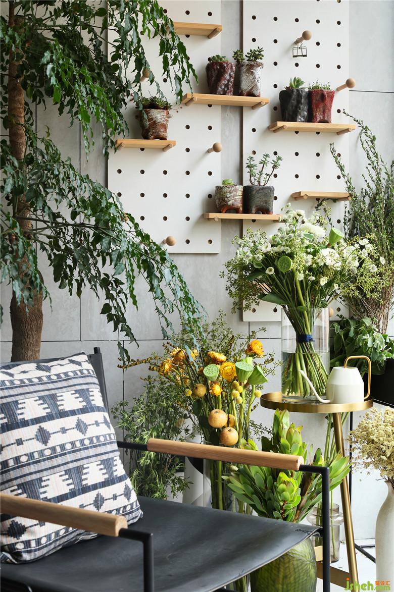 陽臺的寬度很不錯,適合用作休閑使用,滿墻的洞洞板設(shè)計,方便屋主養(yǎng)殖花木,搭配休閑椅,是個很不錯的放松小角落。室內(nèi)設(shè)計師