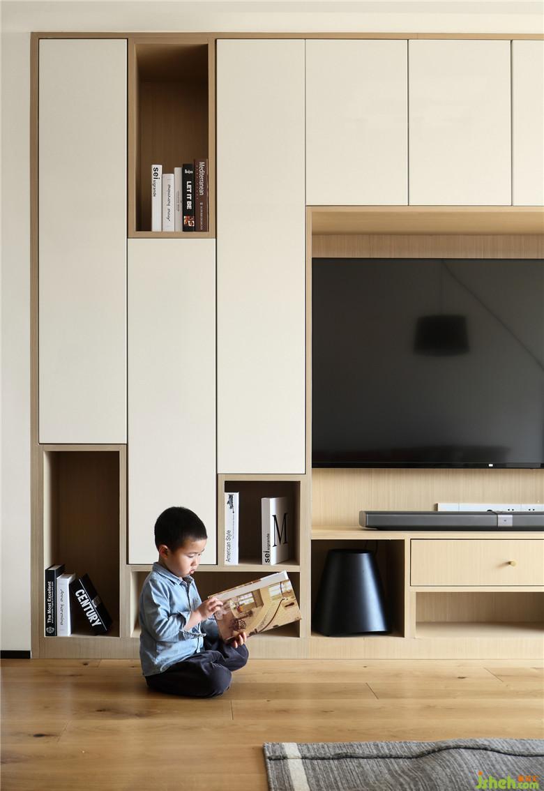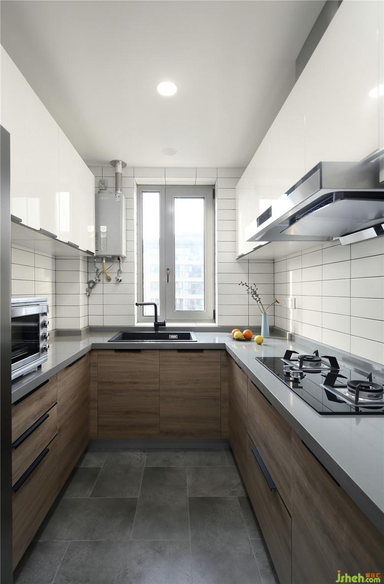 ▲廚房空間,櫥柜的設(shè)計(jì),依舊運(yùn)用白+木進(jìn)行搭配,形成視覺(jué)上整個(gè)空間的統(tǒng)一。