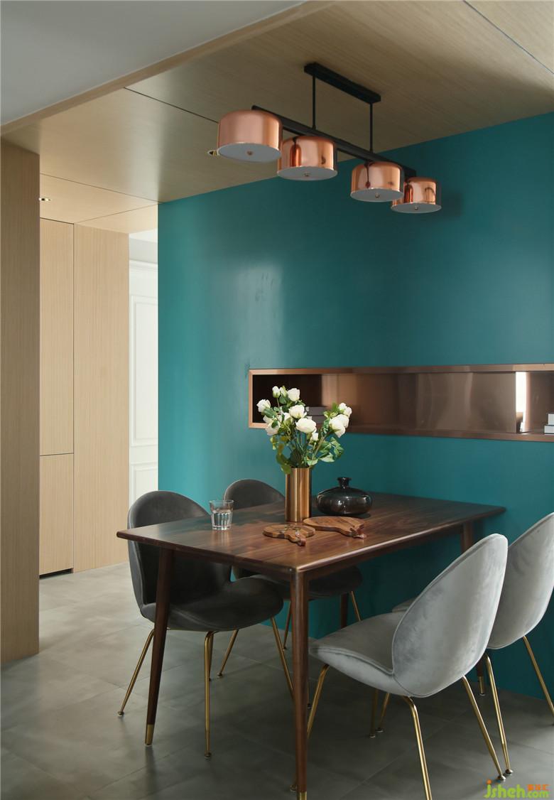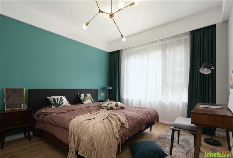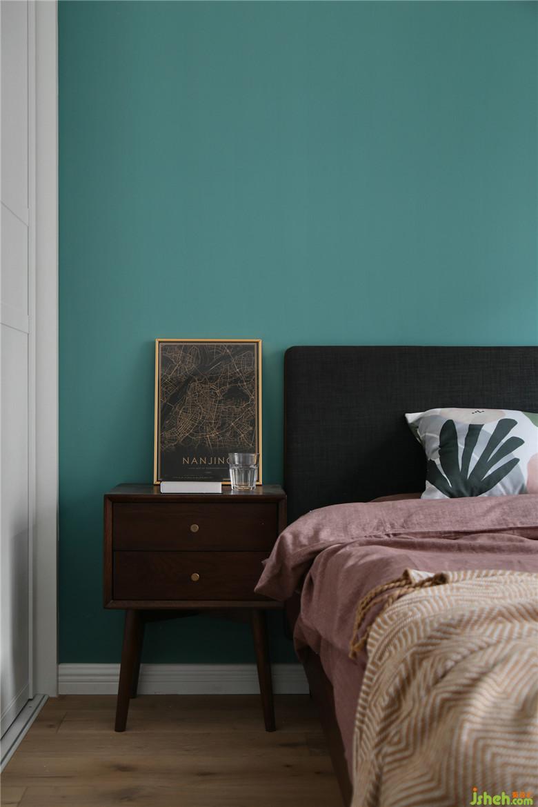 ▲主臥墻面也依然延續(xù)著餐廳藍綠色調,精心挑選的裝飾畫,柔軟的織品與木質家具,色彩與材質互相搭配,賦予生活舒適感。