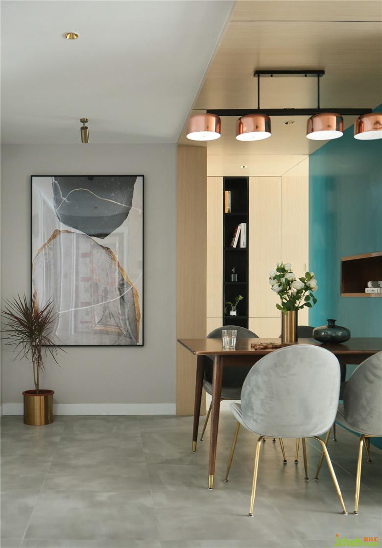 ▲在進門一眼望過去的盡頭配以精心挑選的裝飾畫,輔以射燈,在入戶處便能感受到整個空間的設計理念,輕松悠然,卻也精致靈動。右側的鞋帽柜其中室內設計師增設了抽屜式換鞋凳,讓屋主回家或出門時不必彎腰,很是貼心的小細節(jié)設計。而木質元素從空間立面一直延伸到頂部,使這片場域形成整體功能區(qū)。