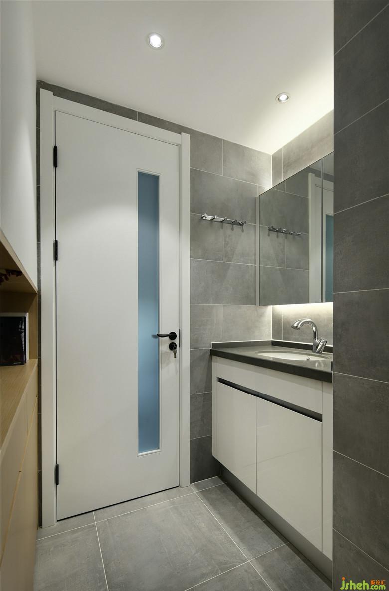▲將原戶型不必要的隔墻進行拆除,以玻璃門增加空間的采光及通透感。干區(qū)空間用色層次分明,以最為經(jīng)典的黑、白、灰三色營造出空間的利落清爽。