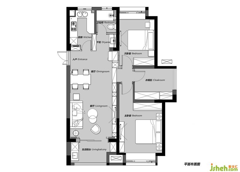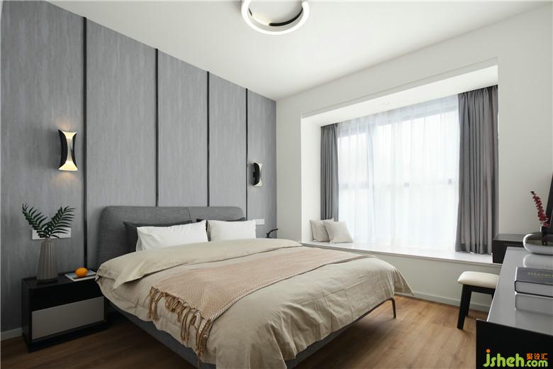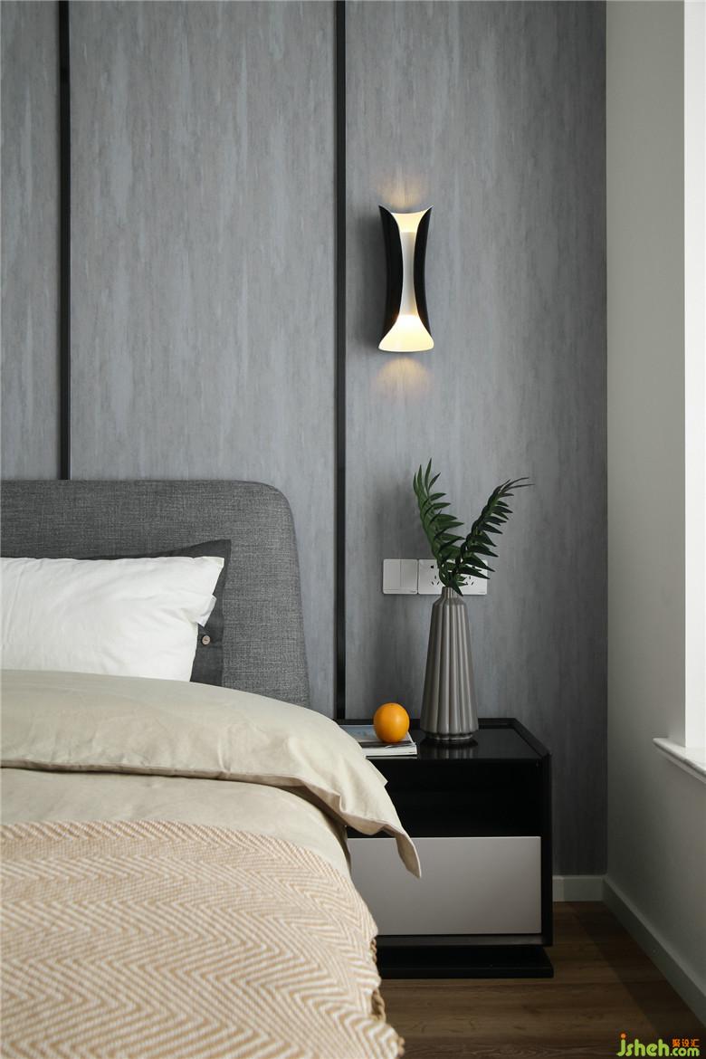 ▲主臥以灰色墻紙作為背景裝飾,以黑色不銹鋼嵌條增加背景層次。灰調(diào)子的睡眠空間讓室內(nèi)更加清爽與通透。