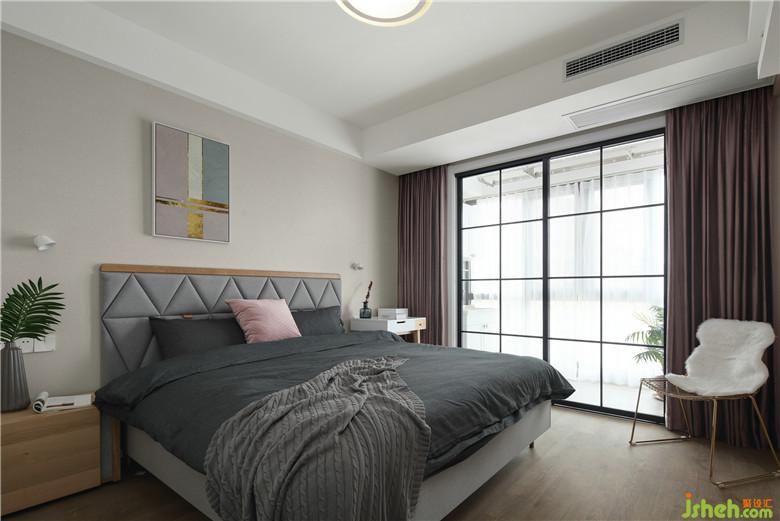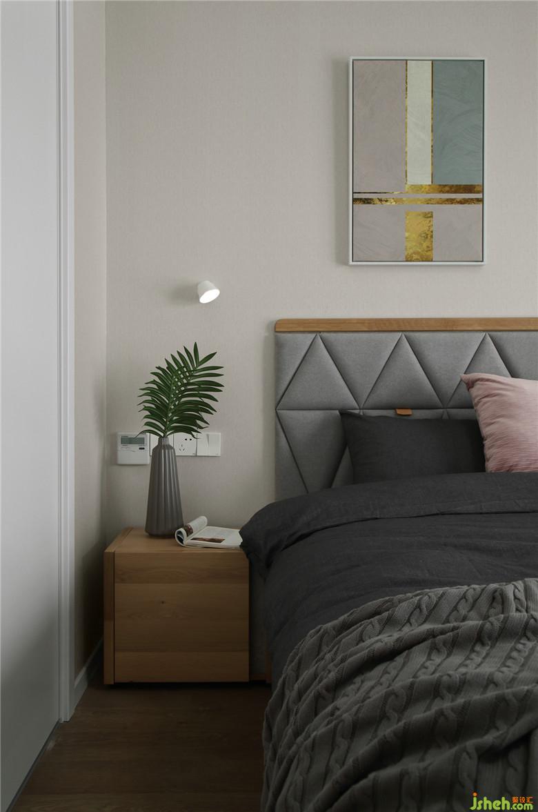 ▲由于臥室是睡眠區(qū)域,設(shè)計師則以柔和的灰粉調(diào)子進(jìn)行呼應(yīng),精心挑選的裝飾畫也迎合了整體色系,旨在達(dá)到屋主對藝術(shù)追求的同時,保證家應(yīng)有的舒適度與溫馨感。